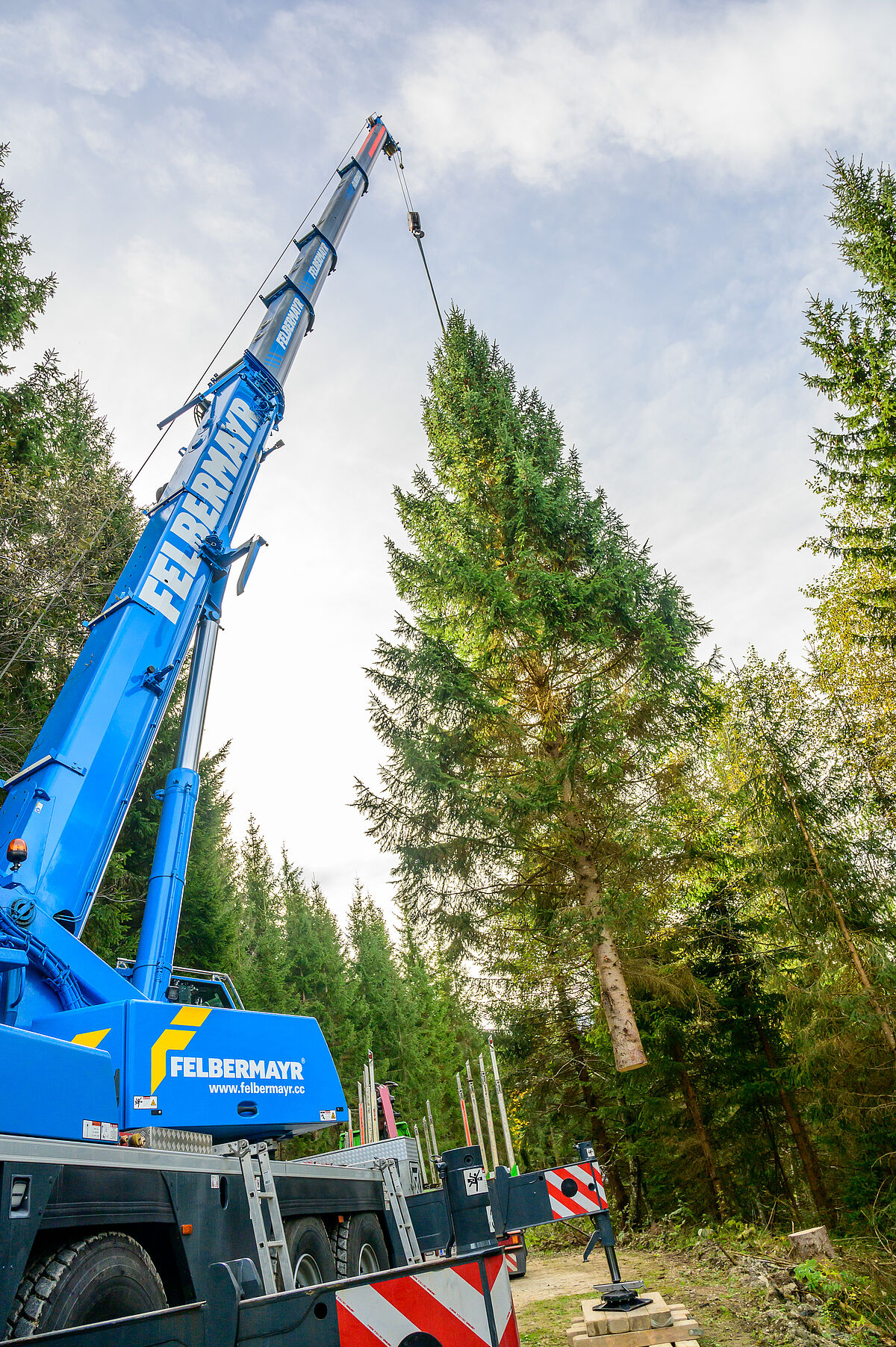 Pünktlich um 8.00 Uhr kam die über 40 Jahre alte Fichte aus dem ÖBf-Forstrevier Gosau im Salzkammergut am Ehrenhof in Schönbrunn an. In der morgendlichen Dämmerung übernahmen die Expert:innen des Forstamtes der Stadt Wien das stattliche Exemplar. Fachmännisch hoben sie den Baum vom Tieflader und verankerten ihn anschließend im Schacht am Ehrenhof. Mit Keilen befestigt und Seilen fixiert wartet der Baum nun auf seinen großen Auftritt bei der 30. Eröffnung des Kultur- & Weihnachtsmarkt Schloss Schönbrunn am 18. November 2023. Dort erstrahlt die mit 1.000 umweltfreundlichen LED-Lichtern geschmückte Weihnachtsfichte erstmals in ihrer vollen Pracht.